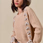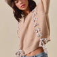 SO ME Checkered Plaid Tape Lace Up Ribbed Sweater